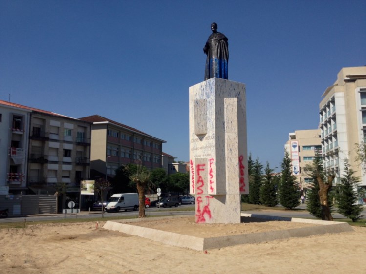 Deitem a pôrra da estátua abaixo! E depois, quando estiver cá em baixo, separada do pedestal, pintem-na de branco e caguem-lhe em cima! Assassinos e fascistas não merecem estátuas, mas muito menos merecem distrair a atenção do Povo, que deve estar centrada em coisas bem mais importantes.